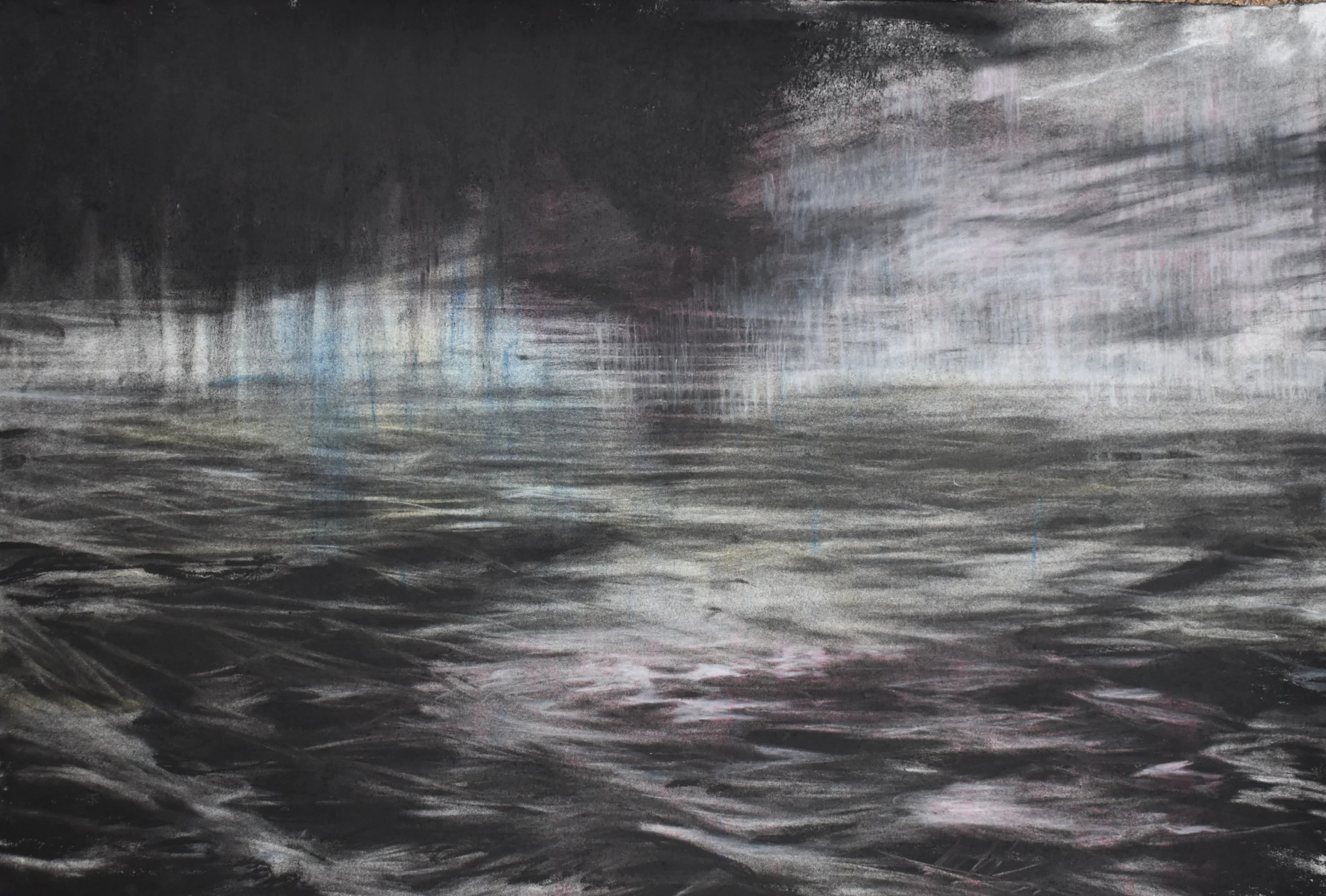 'For Ginan (Ocean study I)' 2022 mixed media on paper (37.5 x 56 cm). Completed as part of the preliminary background work for the piece ‘Ginan (radiating)’.